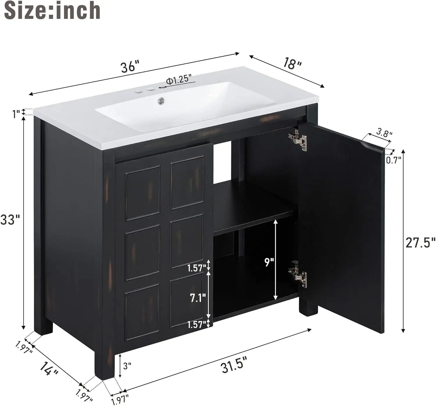 - 36-inch solid wood vanity organizer with a built-in sink and two doors— a complete combo cabinet set from Hign-concerned that offers reliable performance in any bathroom layout.