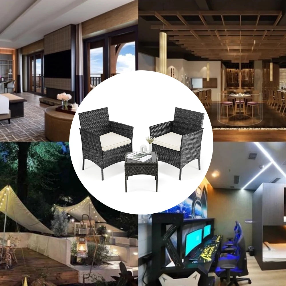 【High Quality Rattan】DUMOS Patio Furniture Set 3 Pieces are made of rattan wickers that make this outdoor furniture looks fashion and modern. Our all-weather rattan chairs adopts exquisite craftsmanship which is comfortable, breathable, waterproof. You can rest assured to use it outdoors.
