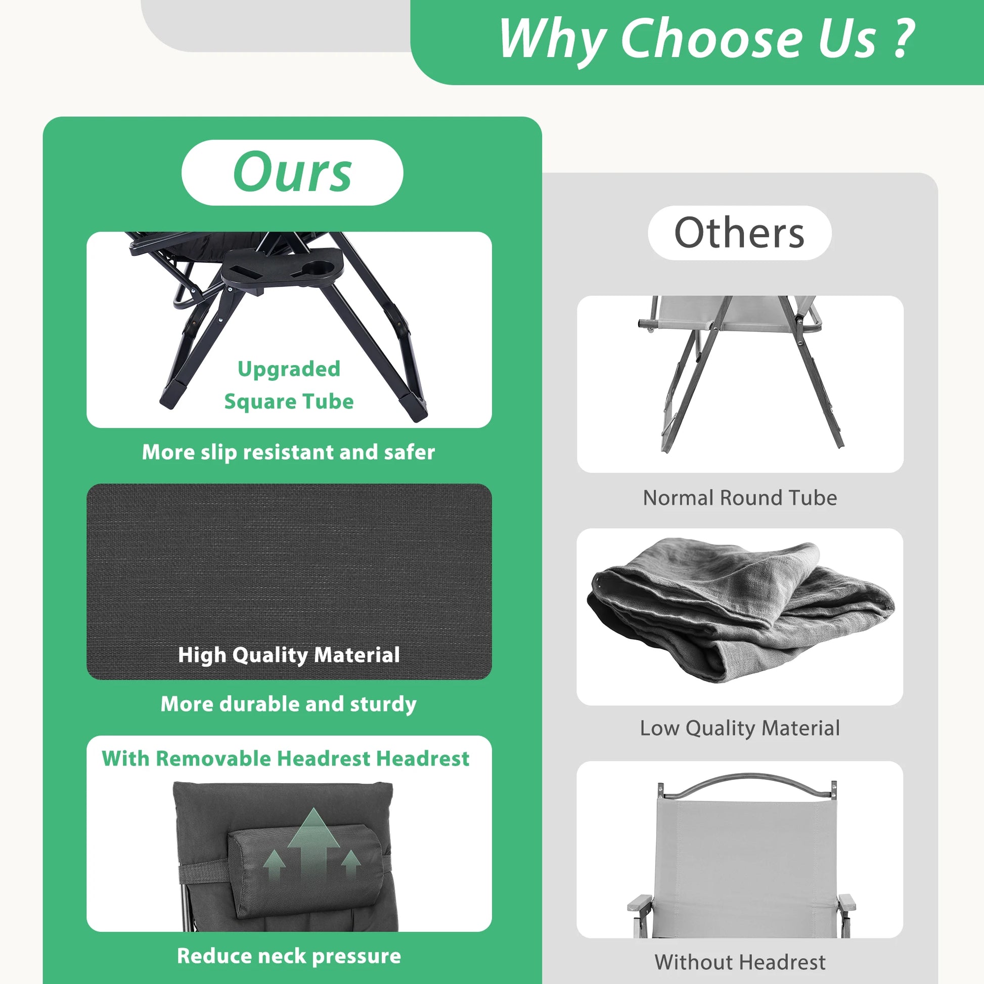JHK Zero Gravity Set of 2 Portable Recliner Camping Patio Outdoor Garden Lounge Chair with Cup Holder Trays Adjustable Pillow