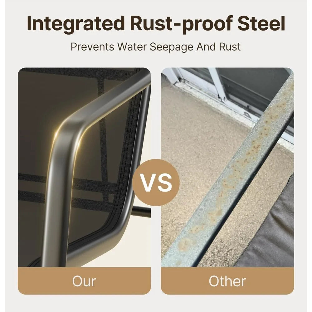 - Sturdy and Durable: Our outdoor table and chair set is made of high-quality metal steel pipes, making them resistant to deformation and highly durable. The chair back is reinforced with additional metal supports to enhance stability and load-bearing capacity. The table is made of tempered glass for long-lasting use