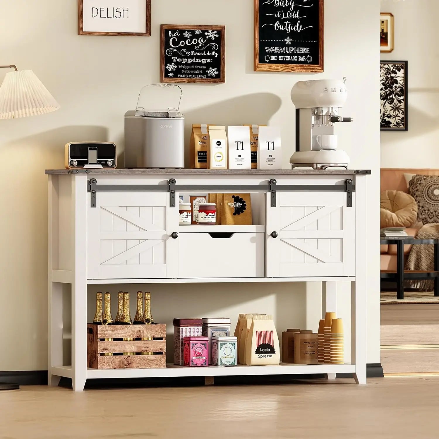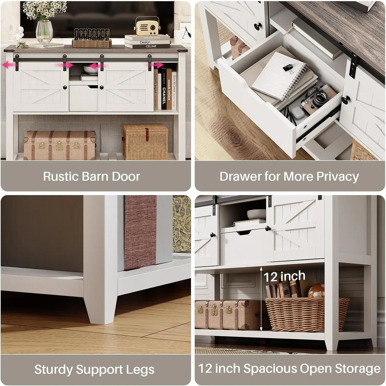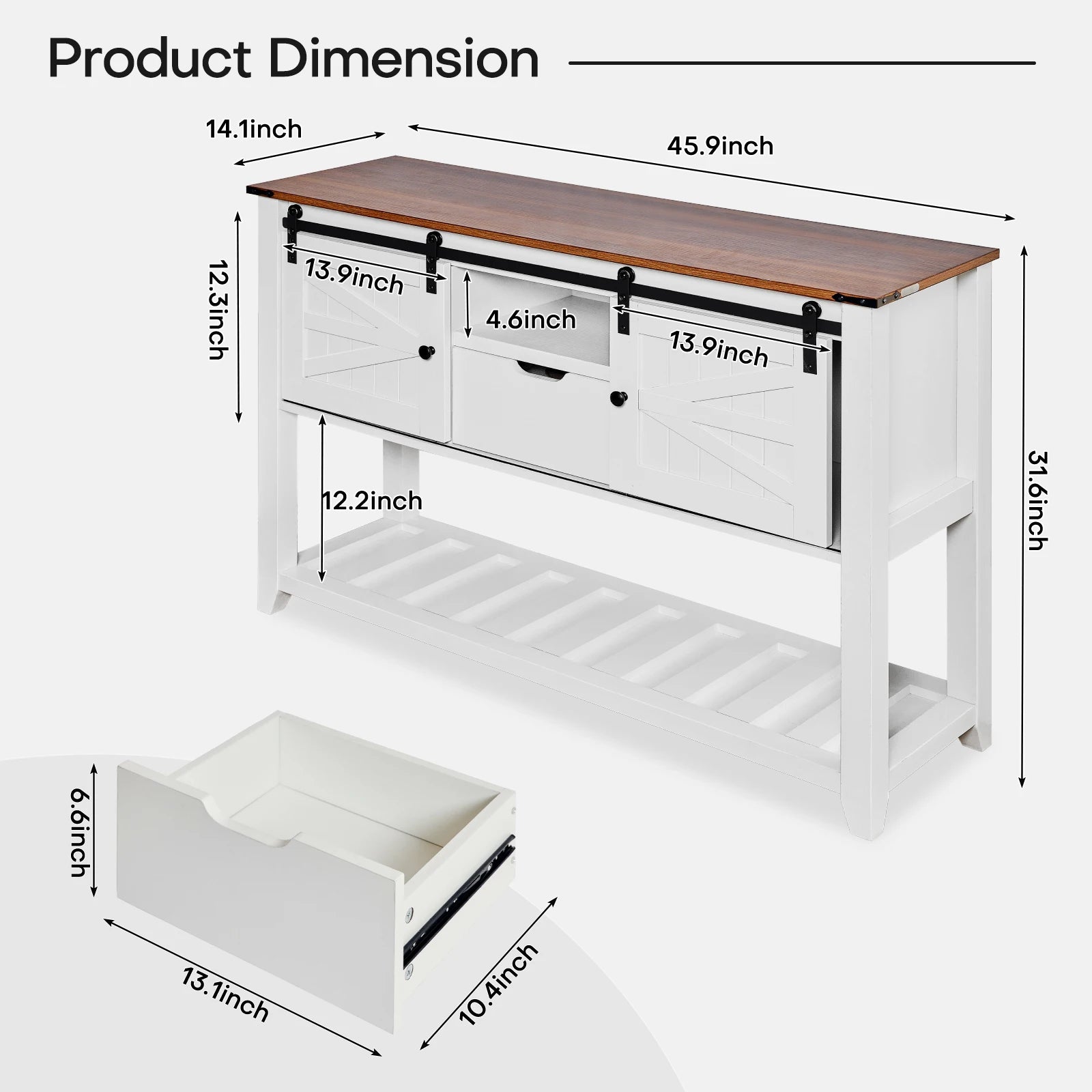 Redlife Entryway Table w/ Sliding Barn Doors, 46" Farmhouse Sofa Console Table w/ Storage Shelf for Hallway Entryway Living Roo